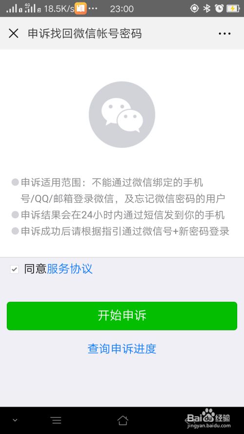 点击申诉找回微信账号密码,进入到开始申诉界面,如图