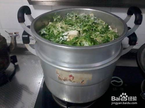 跟蒸芹菜叶、苦菊叶的方法一样。大约十分钟就好了。