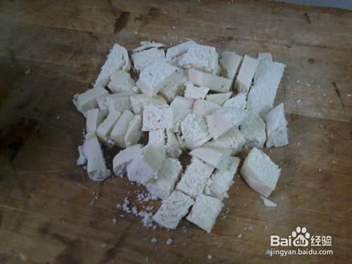 把馒头倒进菜盆中混合。鸡蛋磕一小孔。