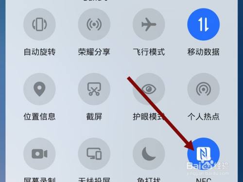 1、从手机屏幕顶部向下滑动,拉出控制控制,点亮nfc图标打开手机nfc。