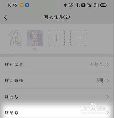 2、进入聊天信息页面后,找到下方的【群管理】一项,进入管理群;