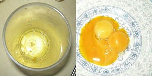 把鸡蛋蛋黄与蛋白分开,分别放入两个大碗中,蛋清中不能有蛋黄。(切记:大碗干净、无水无油。