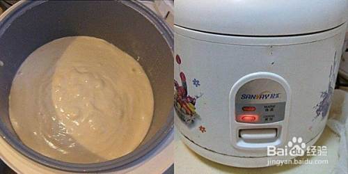 将电饭煲预热40秒后,在锅里均匀的刷上一层食用油。将搅拌均匀的蛋糕糊倒入锅内,震动两下,震出气泡,使蛋糕糊平稳。盖上锅盖,按下煮饭键,2分钟后会自动跳到保温状态,等待20分钟,接着再按一次煮饭键,等待20分钟后,打开锅盖,满屋飘香了(注意:电饭锅的出气孔要用毛巾堵上)。