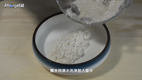 糯米用清水洗净放入盘中。