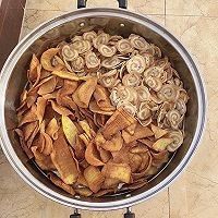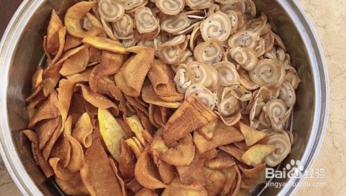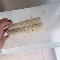 放入冰箱冷藏1个小时定型,方便切,切的越薄越好,下锅炸至变色变硬就好了