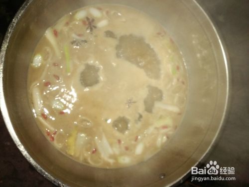 锅里加水,依次放入备好的料;八角,葱段,姜片,豆瓣酱,枸杞。