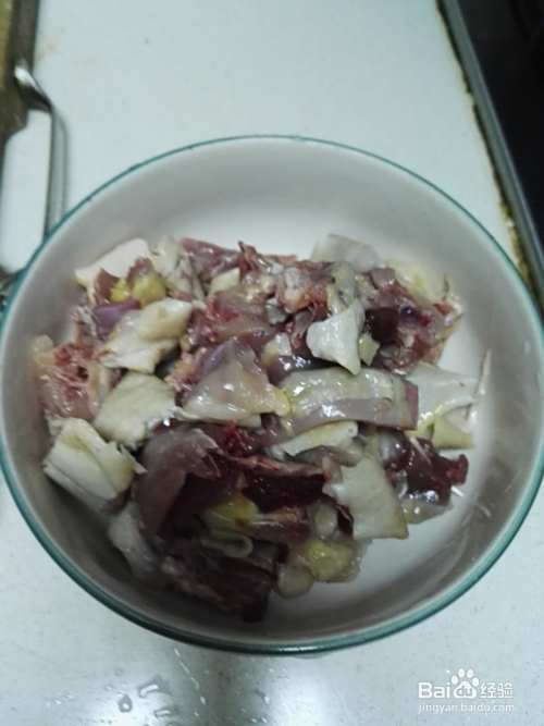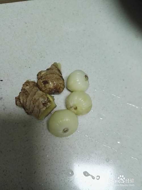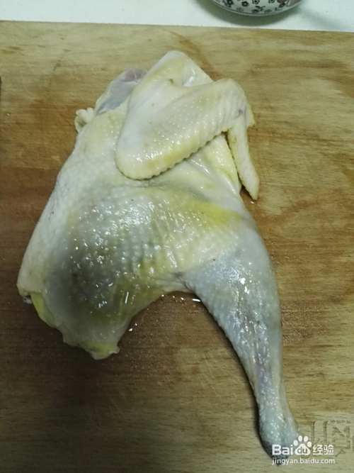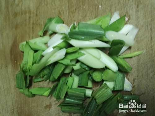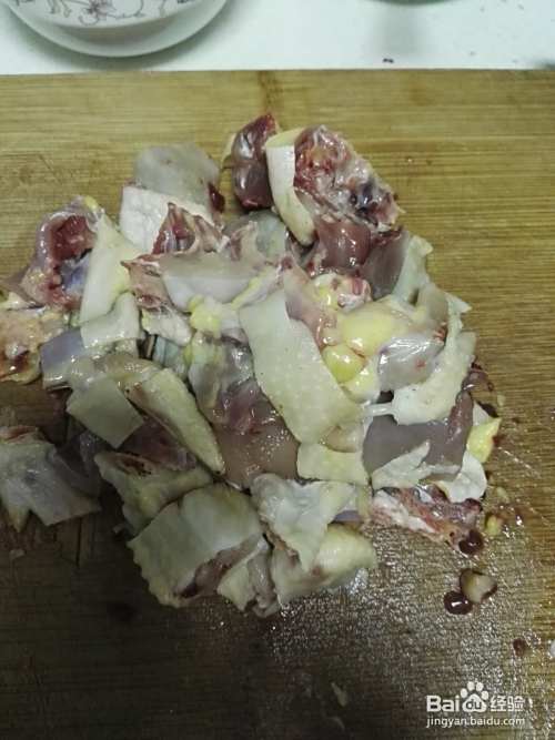 先把半只鸡处理洗干净 ,然后剁成小块用碗装着备用。姜切片,大蒜苗洗净切成段备用。