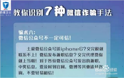 对于各类微信号发布的兼职、中奖等信息要仔细甄别,用户可通过相应的官网、微博、电话等其他途径进行核实,当涉及钱财的时候,要谨慎处理!