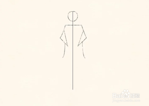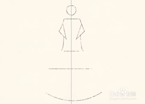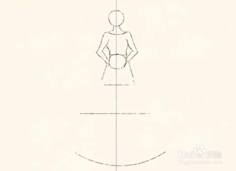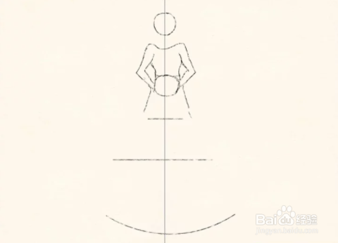 开始画出裙子的轮廓。画三条线:一条大曲线,两条直线。