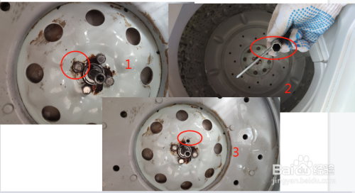拆卸滚筒内部底部的波轮盘,这个是最难的,第一次就是卡在这里拆不了。