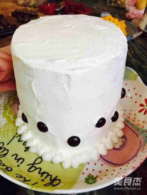 6用硅胶铲均匀的抹满整个蛋糕外层