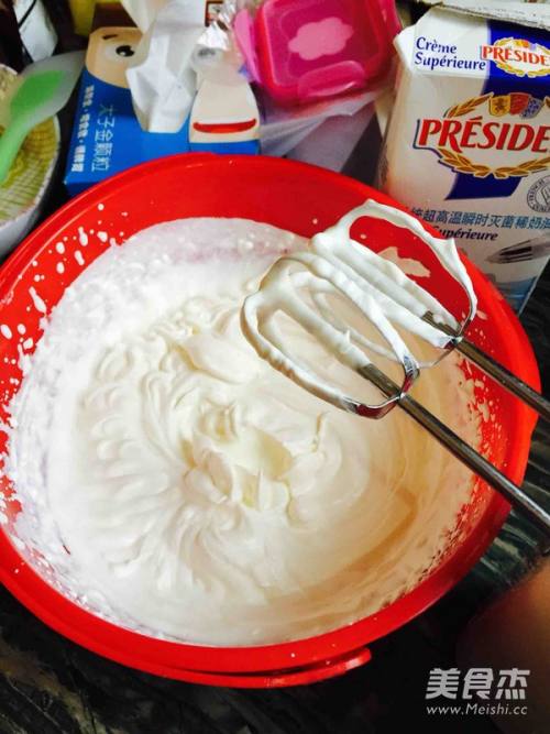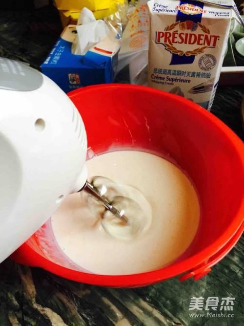 3打到质地变稠 以奶油挂搅独材拌器头不滴落为准