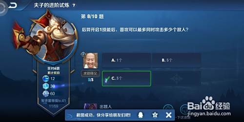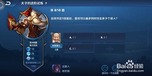 在王者荣耀夫子的进阶试炼中有这样一道题,问我们后羿开启1技能,可以最多同时攻击多少个敌人?我们一起来看下