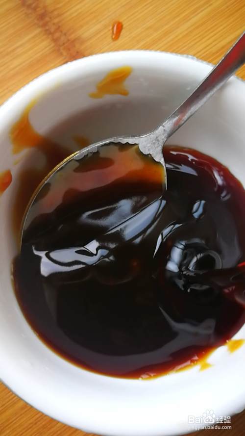 拿一个小碗,放入海天蚝油,一品鲜酱油,放入适量的水,调成汁。