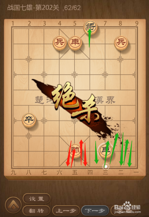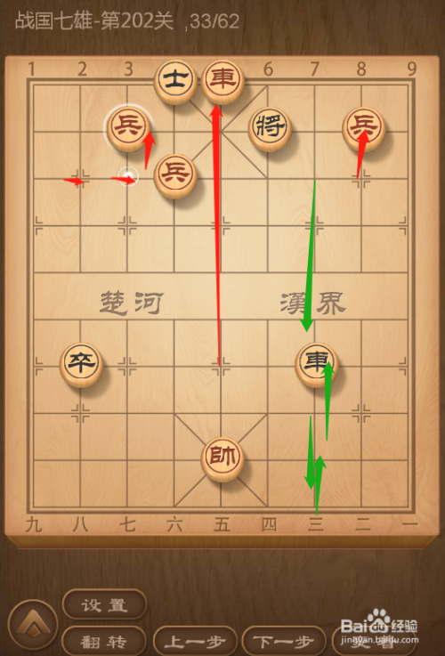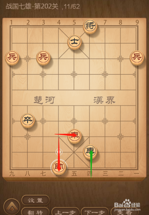 QQ象棋战国七雄第202关通关共需62步,这一关的难度还是很大的,从整体态势来看,黑方双车一兵已经把红帅控制住了,只要黑车下去将军,红帅就得输了,所以红方要想胜利通关,只能率先发起进攻,不给黑方以机会。具体步骤请看下面图文叙述。