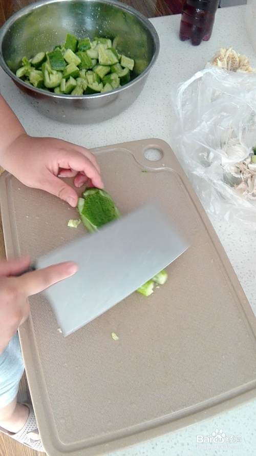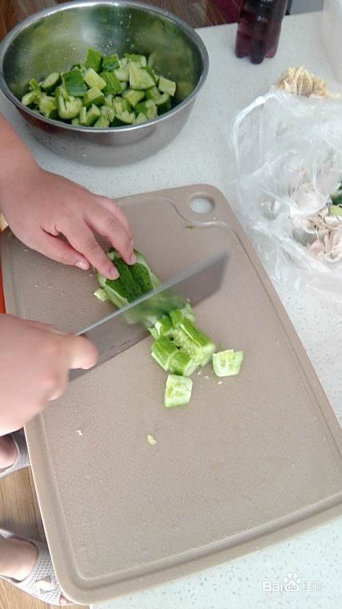 用刀背轻拍黄瓜 拍到后黄瓜不断裂 不太碎 还是连着的一体的