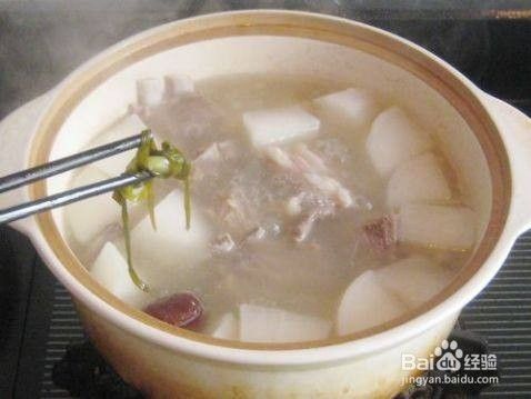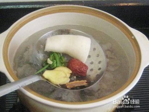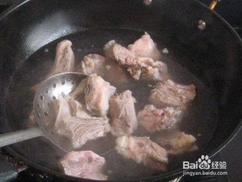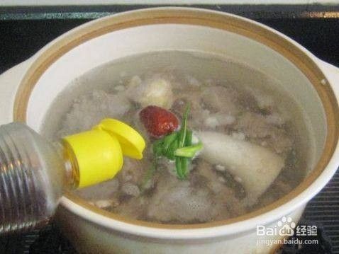 取砂锅,放入适量清水,放下羊排,放入姜,红枣,桂皮,葱结