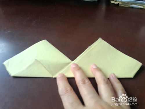 沿着宽的中线一边向上折,一边向下折。