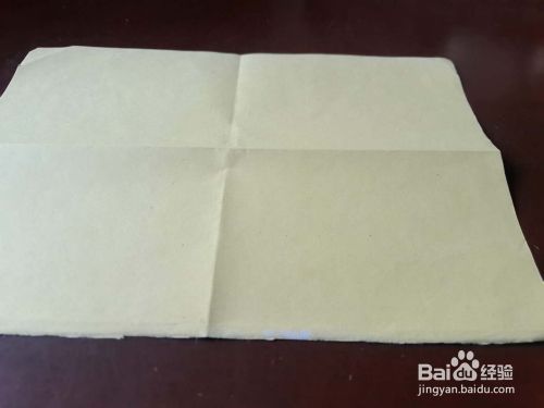 长方形彩纸对边分别对折,折出中线。