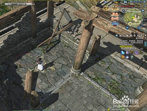 在柱子旁边,可以用技能看