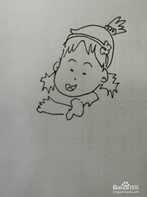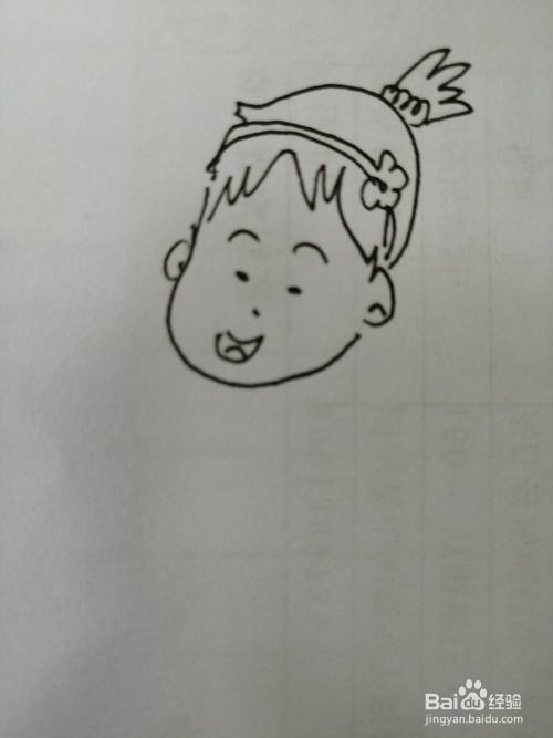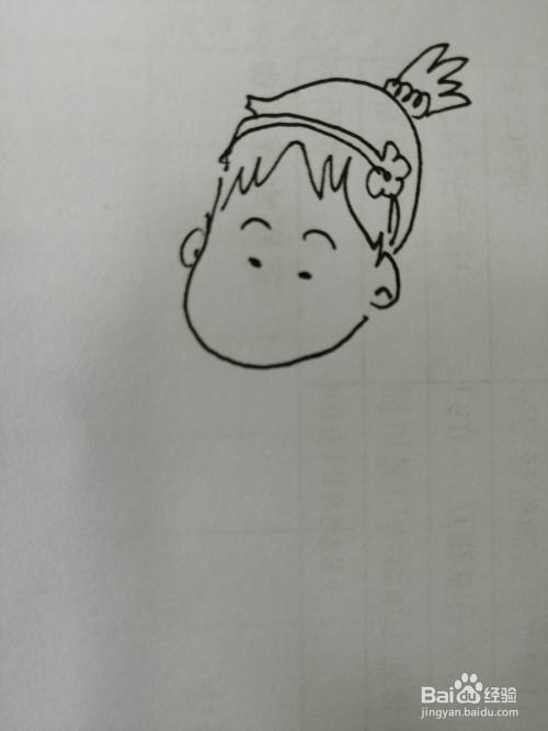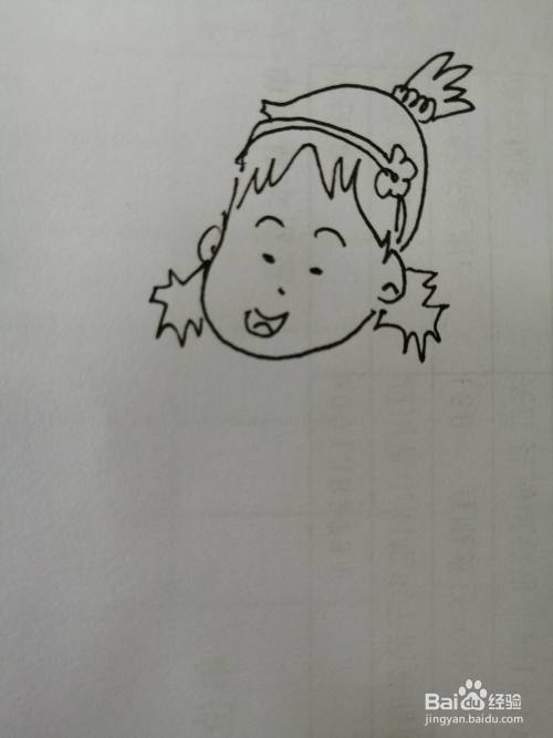 第三步,然后把可爱的小女孩的小辫子画完整,小女孩扎着小辫子真可爱。