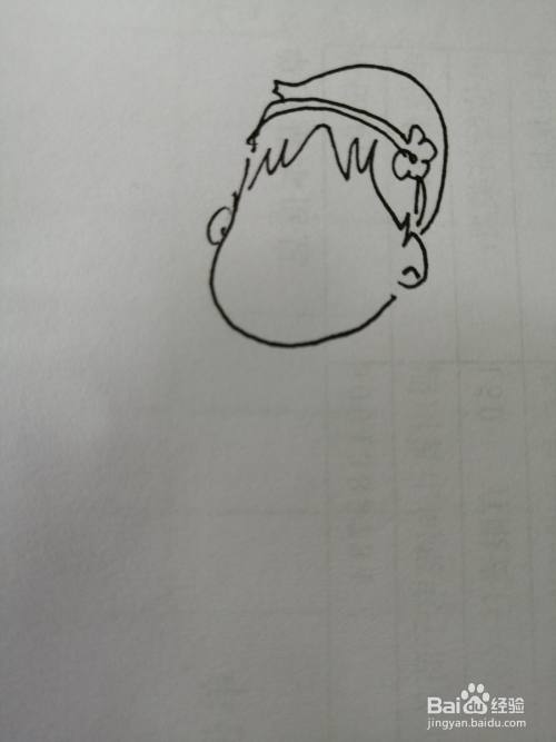 第二步,接着画出可爱的小女孩的耳朵和小女孩头上的发夹,画法比较简单。
