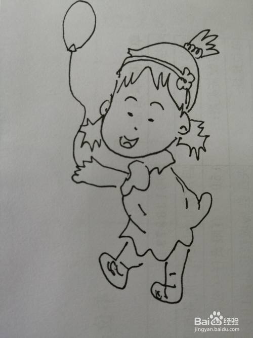 第七步,最后把可爱的小女孩手上的气球画出来。可爱的小女孩就画好了。
