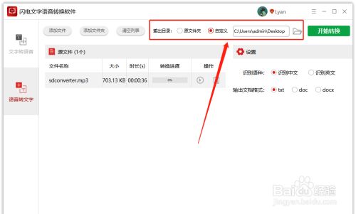 在右侧设置中,选择识别语种,软件支持识别中文和英文语音,以及选择输出文档格式;