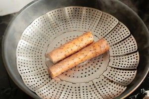 山药入锅蒸软,筷子可轻松戳入。