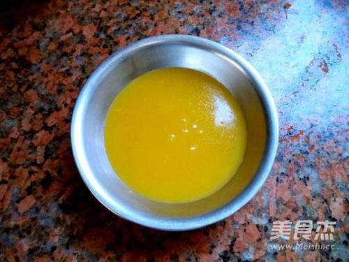 6取少许熟南瓜打成泥,加入适量清水稀释,如果爱吃甜食,可在此时加入少许蜜糖拌匀