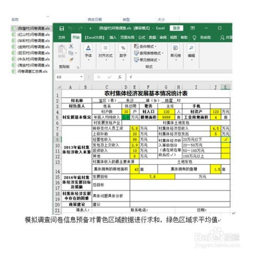 如图所示是一份模拟问卷调查表,在模拟调查问卷总表的信息预备对黄色区域数据进行求和,绿色区域求平均值。(这里为了方便看清把所需要的单元格加了背景色,实际并不需要对单元格加颜色)