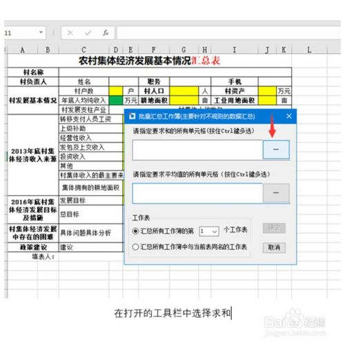 在弹出的对话框中点击准备选择区域求和