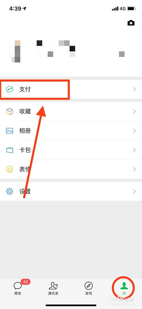 首先 打开手机并点击微信进入,点击右下方的【我}】进入个人中心页面后,点击“支付"即可。