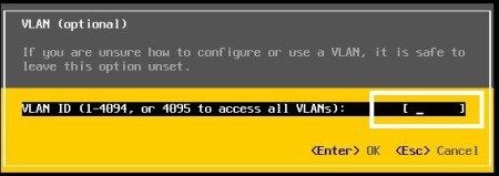 “VLAN (optional)”,如果esxi上联的交换机的端口是Trunk模式,则这里需要设置VLAN ID;如果esxi上联的交换机的端口是VLAN接口,则这里不设置即可