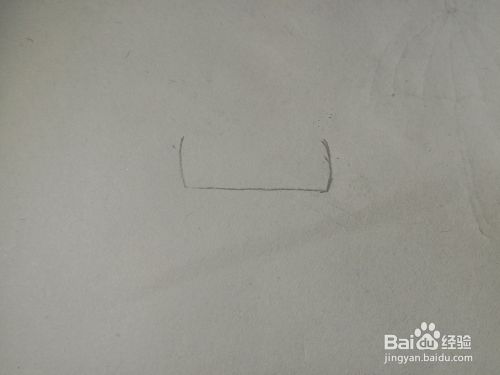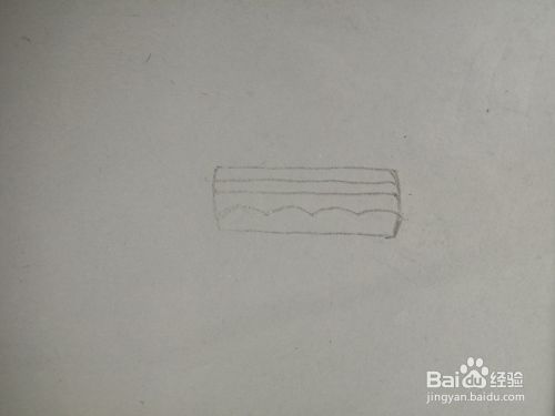 先在白纸上画一个两边带弧度的长方形,再在长方形里画一些简单的线条,轮船的底部轮廓就画好了。