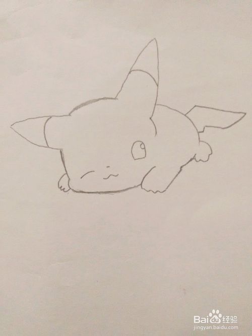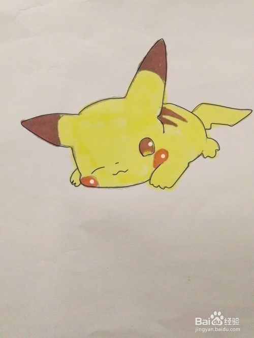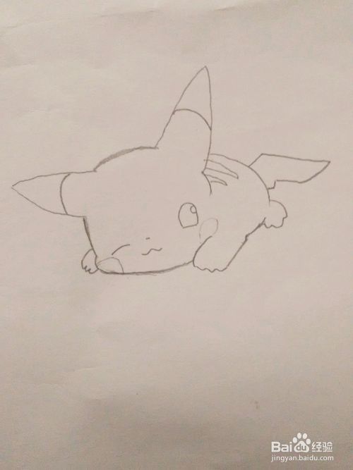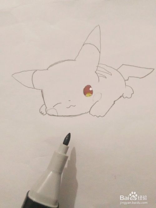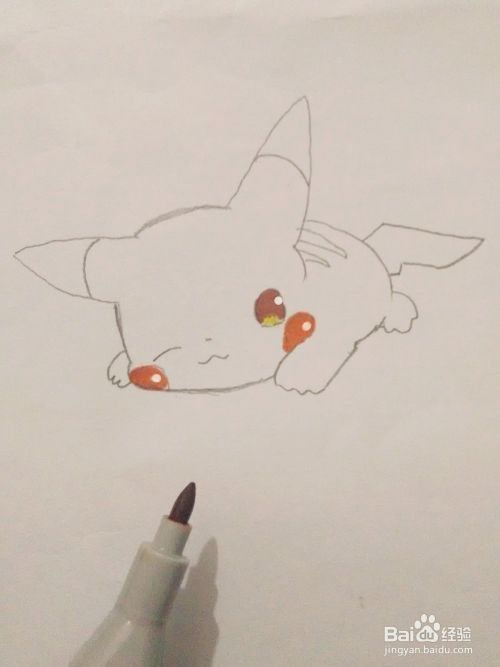 再用铅笔在脸的两侧轻轻地画出它的红脸蛋,再在身体上画出两条花纹。到这步,线条就画完了。