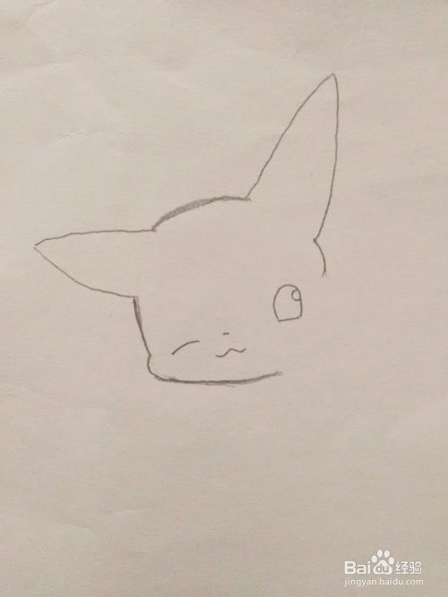 画出它的眼睛,左眼眯着,画一条缝即可,右眼画成大大的眼睛,眼里再画一个小圈,是高光。