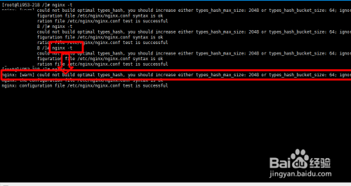 输入:nginx -t 命令测试nginx配置文件;出现下面红框标注的提示: