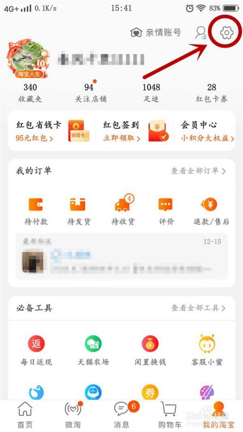 进入到淘宝的个人页面,点击右上角的设置图标。