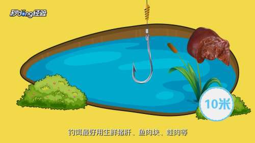 2钓线要长,将吊钩抛入塘内离岸边10米远或更远些,钓饵最好用生鲜猪肝、鱼肉块、蛙肉等。