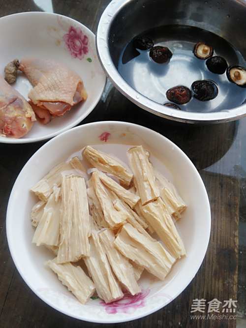 1食材准备(腐竹冷水泡发,香菇温水泡发)