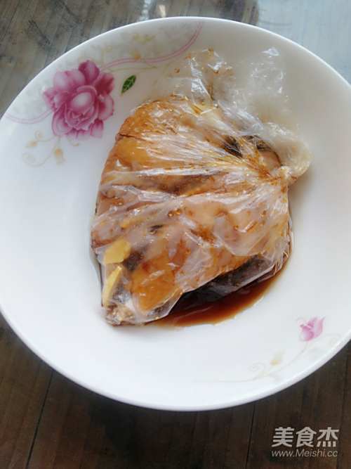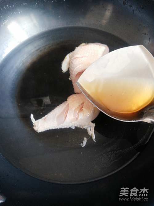 3鸡腿捞起,放生抽、盐、姜片、胡椒粉