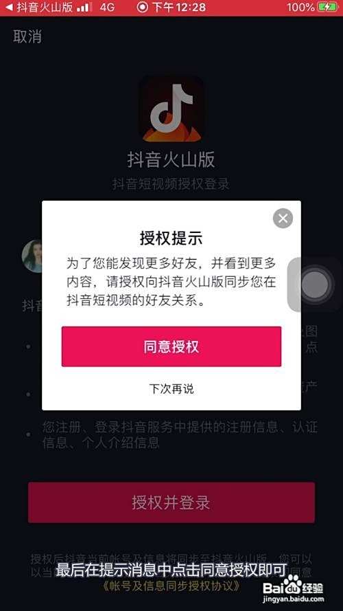 这时应用跳转到【火山小视频】APP,点击授权并登录按钮,