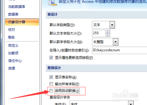 选中了对象设计器的选项,在查询设计中,勾选上 启用自动联接 的选项。