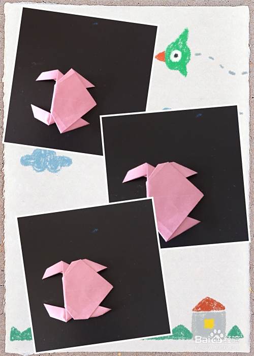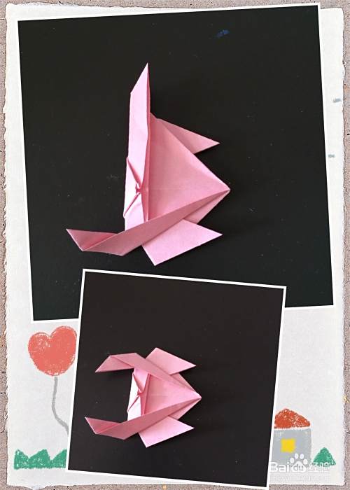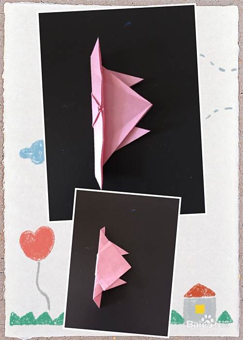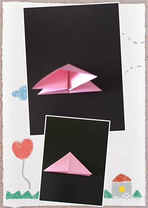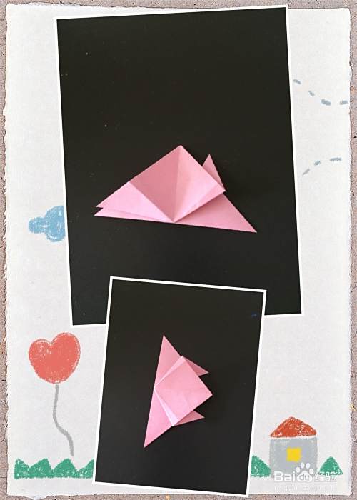 再翻回来,下方一角向上翻折,上方同理,如图。