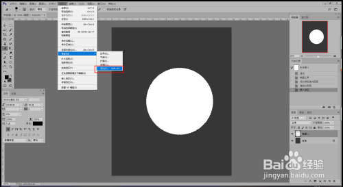 选择【图层】-【栅格化】-【图层】。按住Ctrl选择圆形图层,就会得到一个虚线的选区。