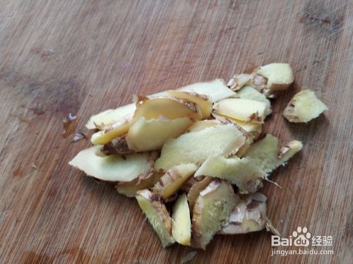 取适量的老姜,清洗干净,不要去皮,然后切成片,备用。
