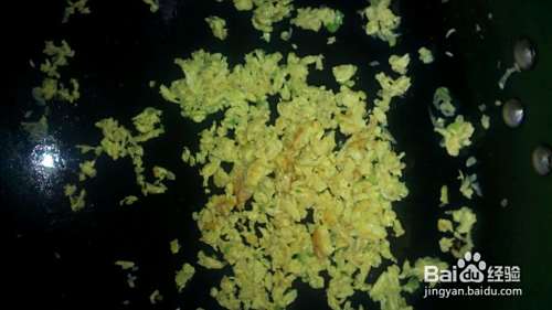 第二步,鸡蛋两个,打匀,放进葱花,姜末,虾皮碎,上锅,加油,炒熟,鸡蛋下锅就用筷子搅拌,就成鸡蛋碎了!到时候就不用麻烦把鸡蛋切碎了!虾皮太大个,我喜欢把它切碎!依个人口味随便切与不切都可以!!