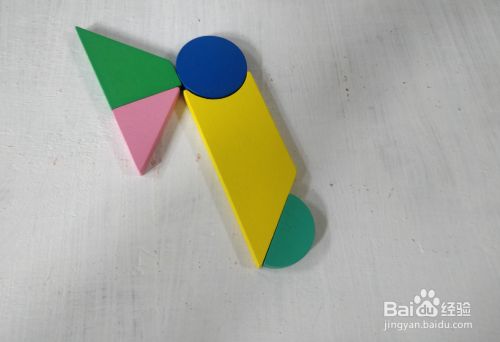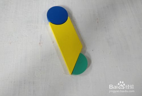 接着在黄色形状的上面,放上圆形挨着,如图。