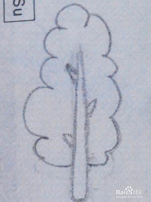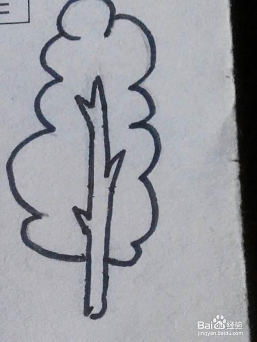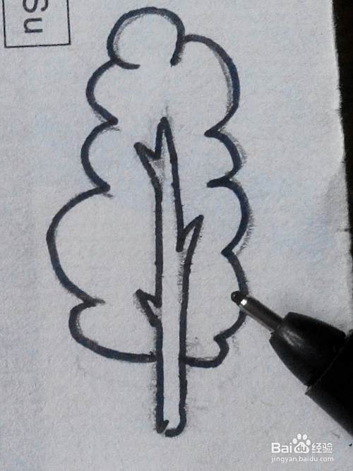然后画出小树的叶子,注意线条起伏要大,要画出波浪线的感觉。